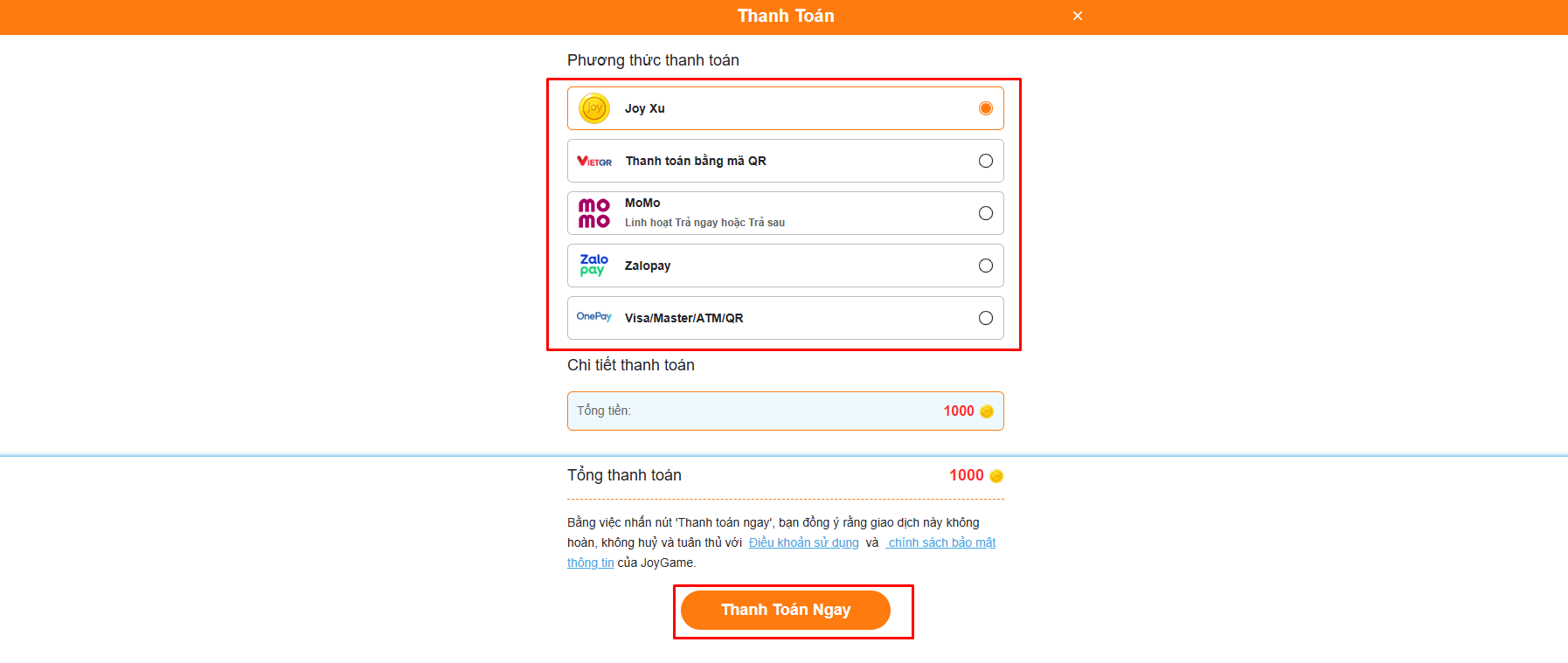 - Với các Bảo Bối chọn phương thức thanh toán bằng Joy Xu, hãy xem thêm hướng dẫn tại đây: Hướng Dẫn Nạp Xu Vào Ví JOY.