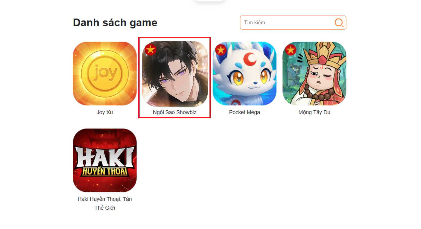 - Sau khi đăng nhập thành công, Bảo Bối chọn game Ngôi Sao Showbiz, để bắt đầu tiến trình nạp của mình.
