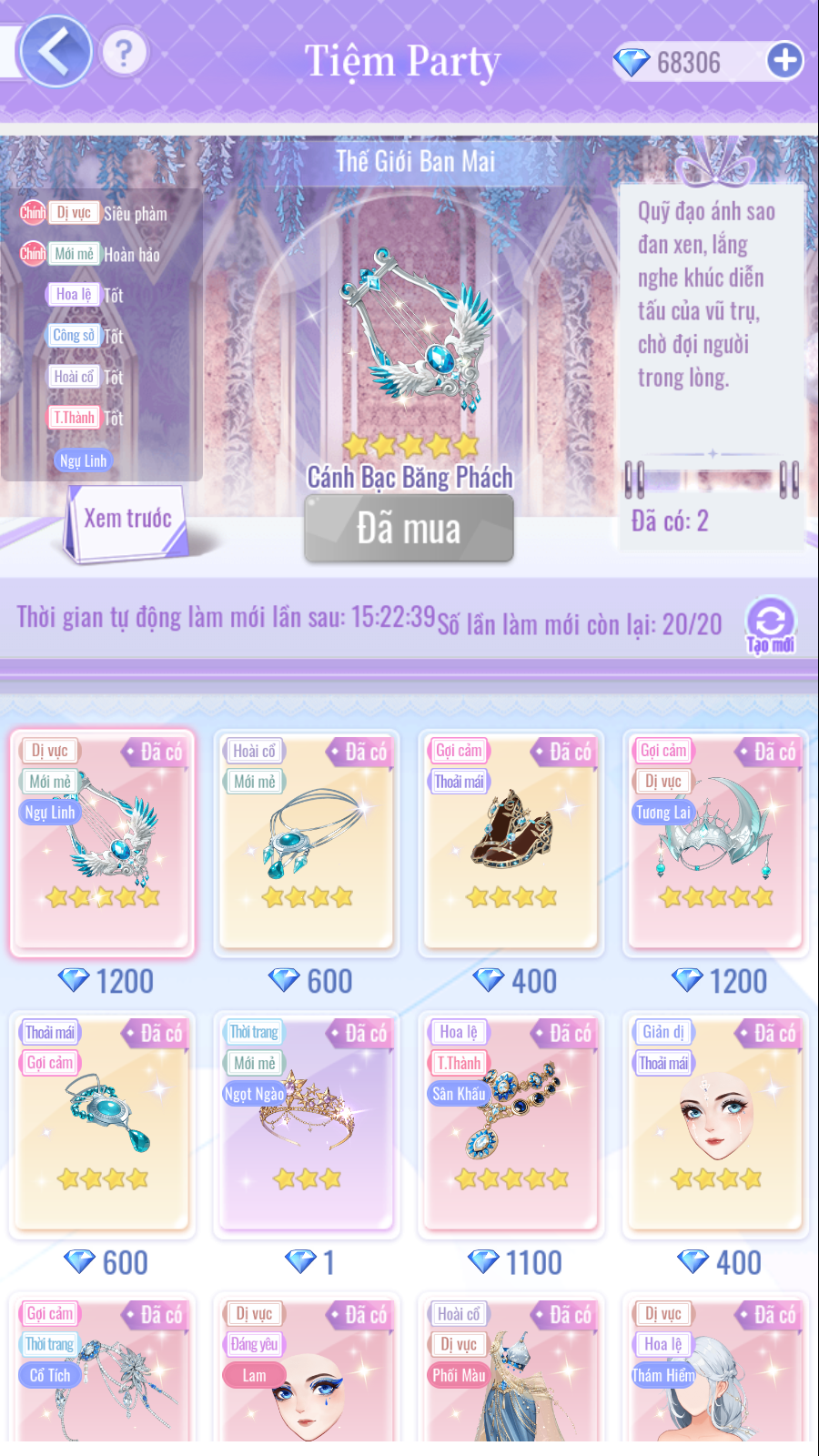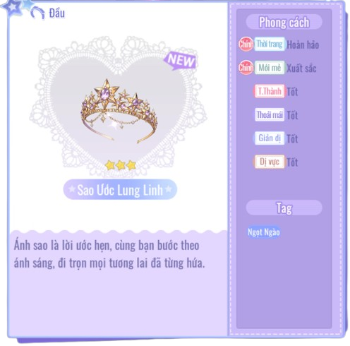 - Phụ kiện đầu "Sao Ước Lung Linh": Tiêu hao 1 [Kim Cương].