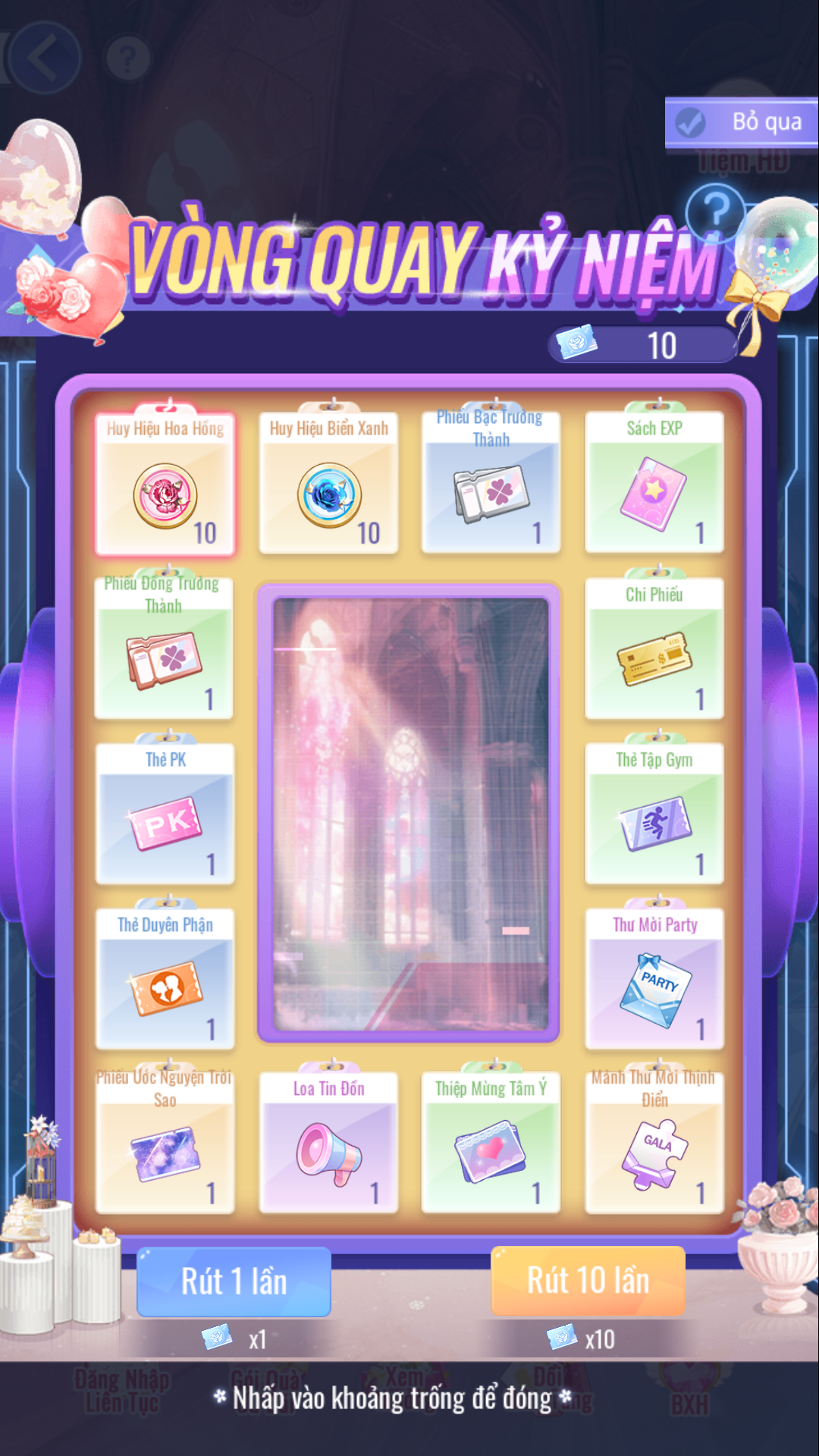 - Giới Hạn 10 lượt mua mỗi ngày. 20 [Kim Cương] = 1 [Khinh Khí Cầu Màu].