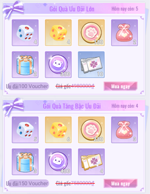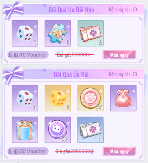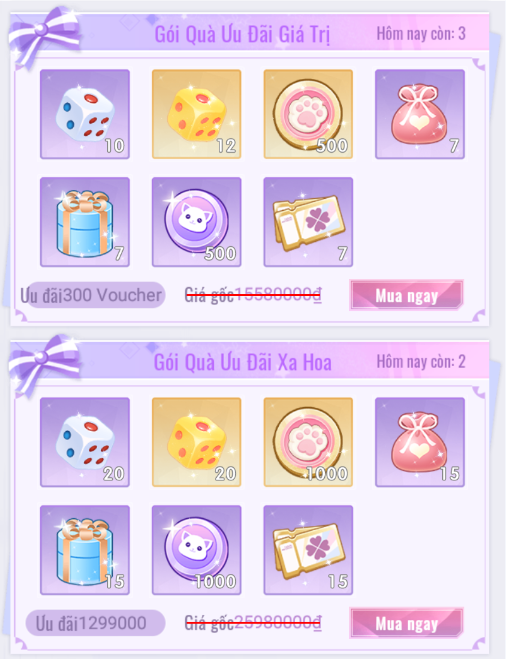 - Gói Quà Ưu Đãi (Bao gồm Gói Quà Miễn Phí).