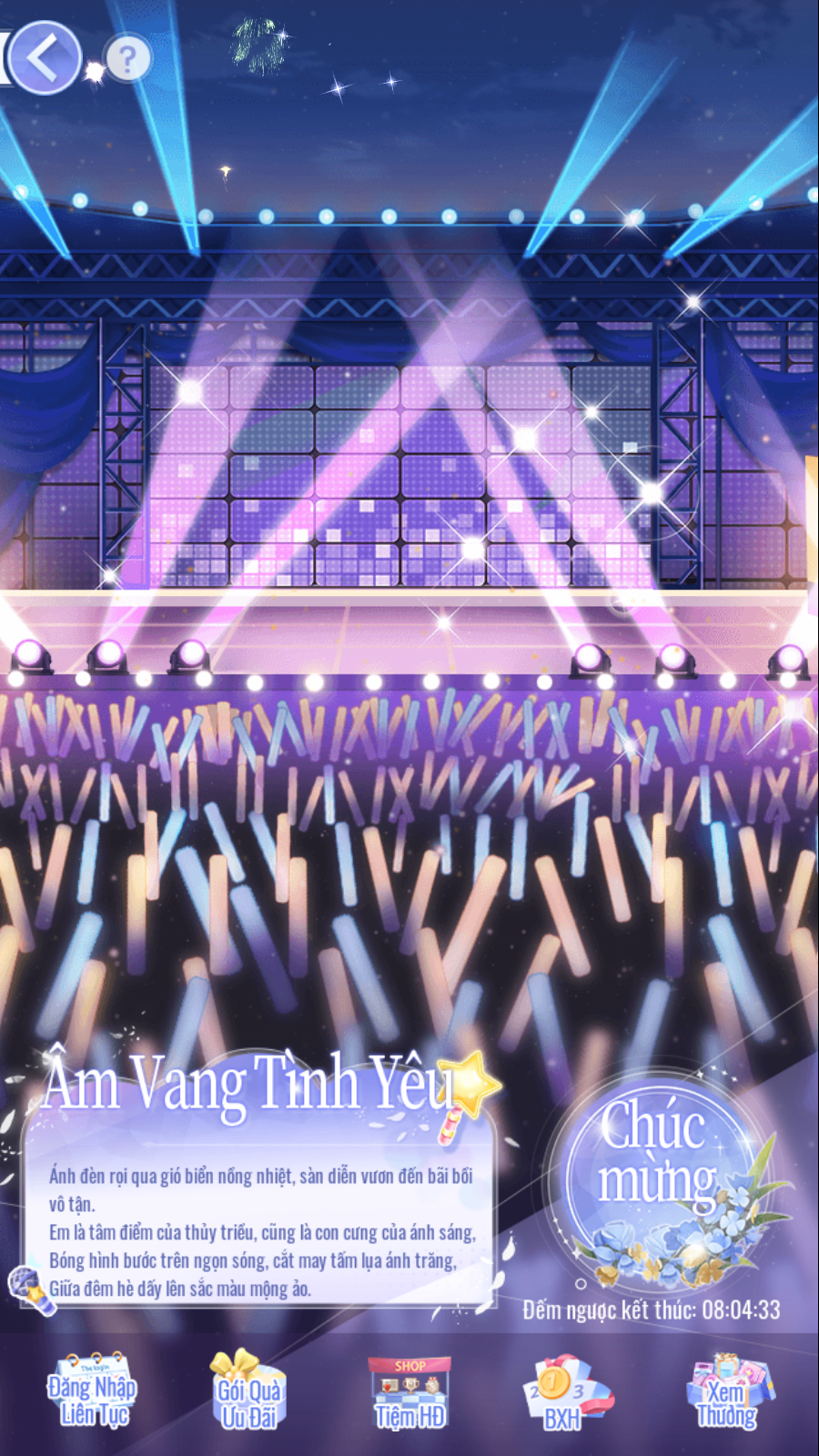 - Sau khi sự kiện kết thúc, lưu 1 ngày để tổng kết, vì vậy hãy đổi thưởng kịp thời nhé!
