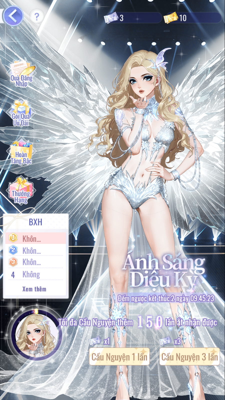 - Vòng 1: Dáng Đặc Biệt 5★ "Ánh Sáng Diệu Kỳ" - Tối đa 150 lần cầu nguyện.