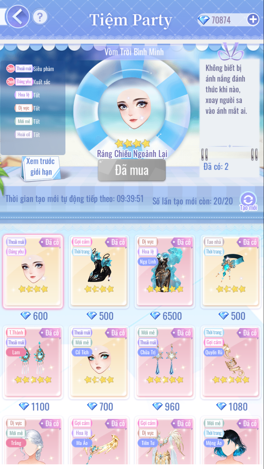 • Ngoài ra, Tiệm Party còn chuẩn bị thêm phụ kiện lẻ 3★ "Ngược Dòng Tung Bay" để các Bảo Bối có thể đổi sau khi đổi hoàn tất 2 trang phục trong tiệm nữa nhé.