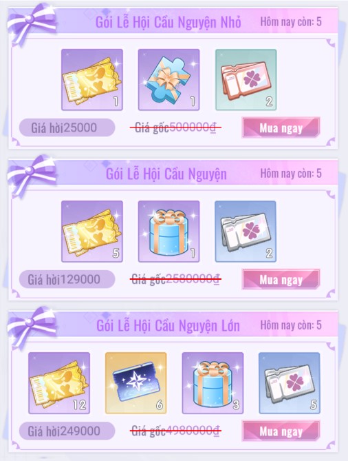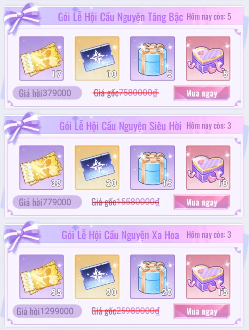 • [Vé Vàng Lễ Hội]: Dùng để cầu nguyện 1 lần trong các sự kiện của Dáng Vẻ Xinh Đẹp.