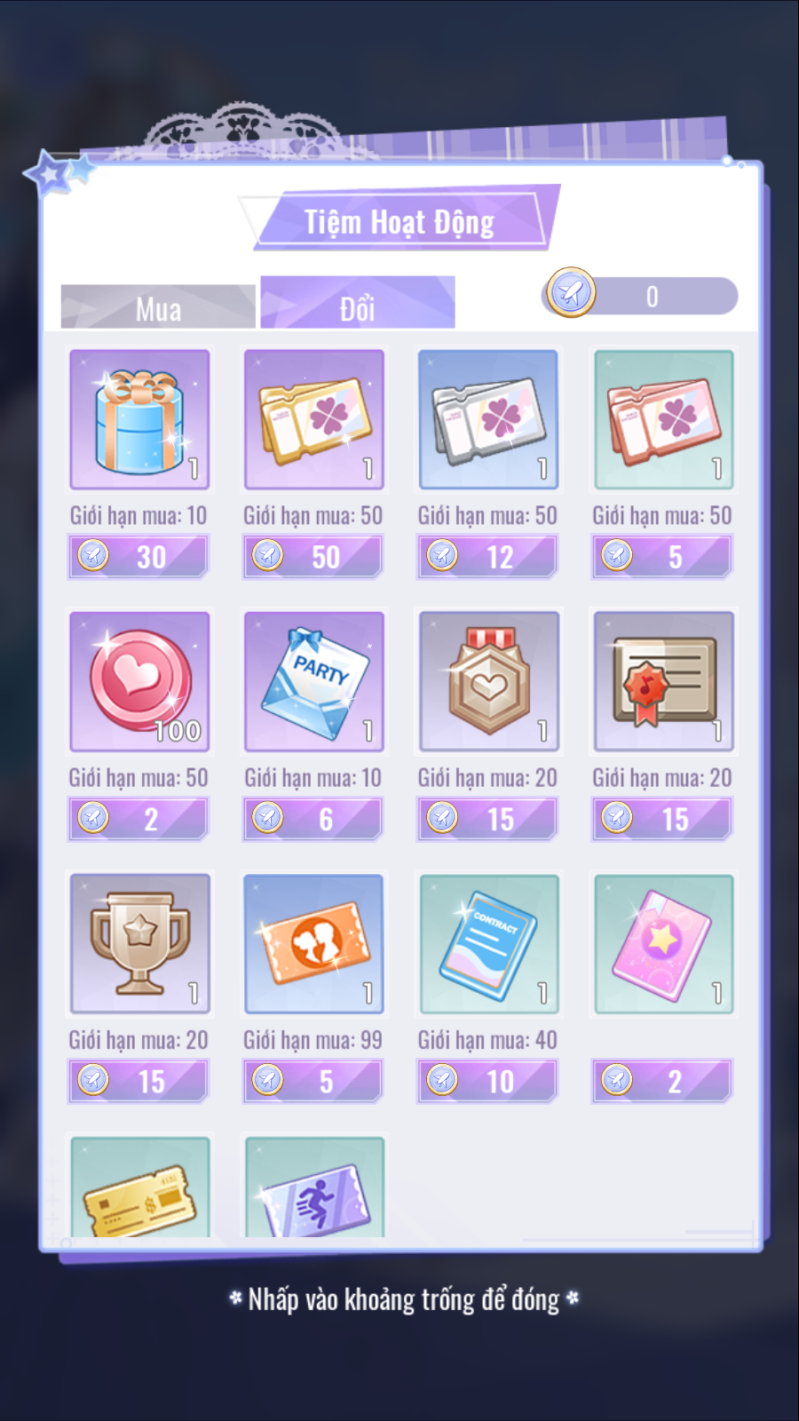- Mua Tiệm Đạo Cụ.