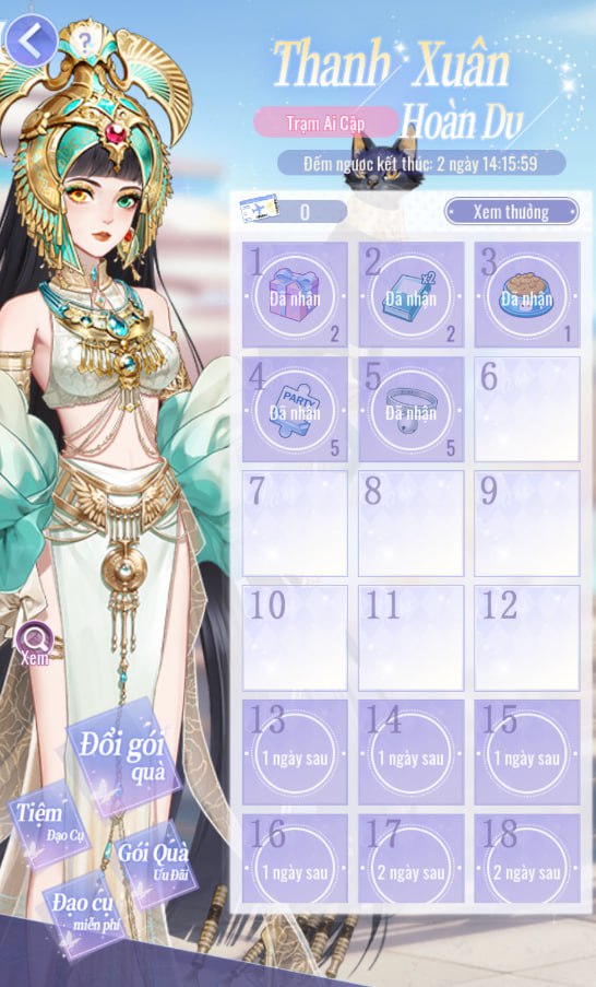 - Mỗi ngày nhớ vào Gói Quà Miễn Phí để nhận quà và vật phẩm hỗ trợ sự kiện nhé!