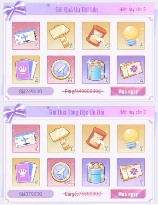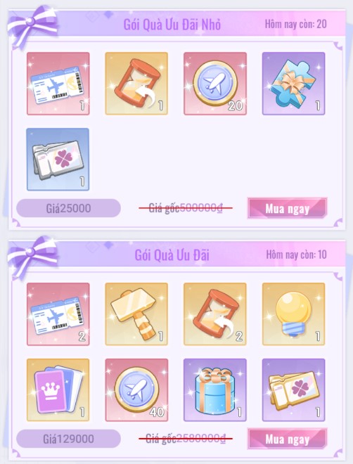 - Gói Quà Ưu Đãi (Bao gồm Gói Quà Miễn Phí).