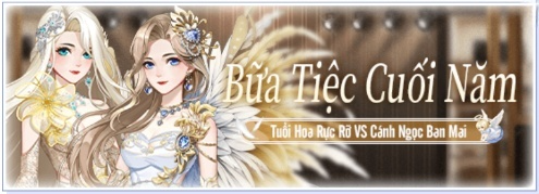 • Hoàn thành sự kiện nhận ngay trang phục hoạt động Bữa Tiệc Cuối Năm gồm 2 trang phục 5★ "Tuổi Hoa Rực Rỡ" và "Cánh Ngọc Ban Mai".