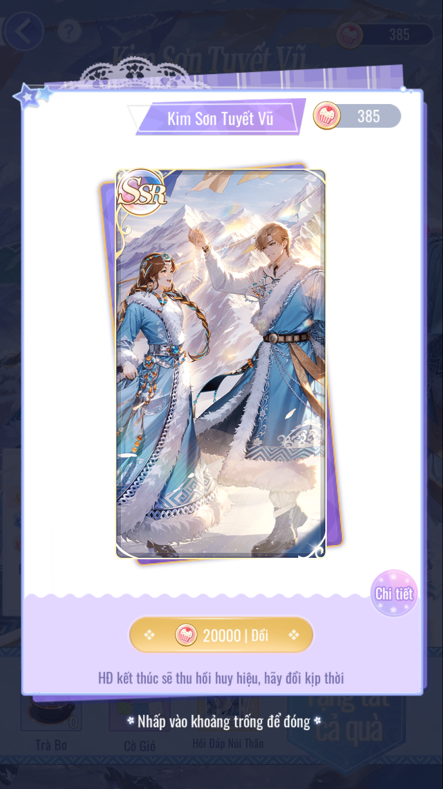- Thẻ bài "Kim Sơn Tuyết Vũ": Tổng tiêu hao 20.000 [Huy Hiệu Ngọt Ngào].