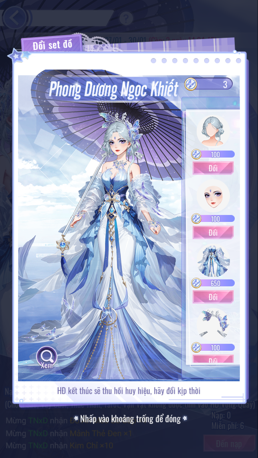 • Để có thể đổi được trang phục nữ 5★ "Phong Dương Ngọc Khiết", cần sử dụng vật phẩm [Huy Hiệu Ngọc Khuyết].