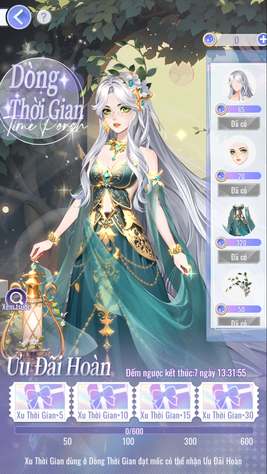 - Trang phục nữ 5★ "Tinh Linh Cây Gió": Tổng tiêu hao 650 [Xu Thời Gian].