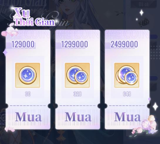 • [Xu Thời Gian]: Dùng để mua Đồng Hành hoặc Trang Phục trong Tiệm Thời Gian / Dòng Thời Gian.