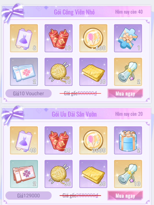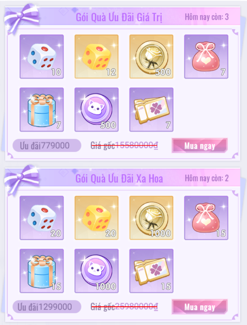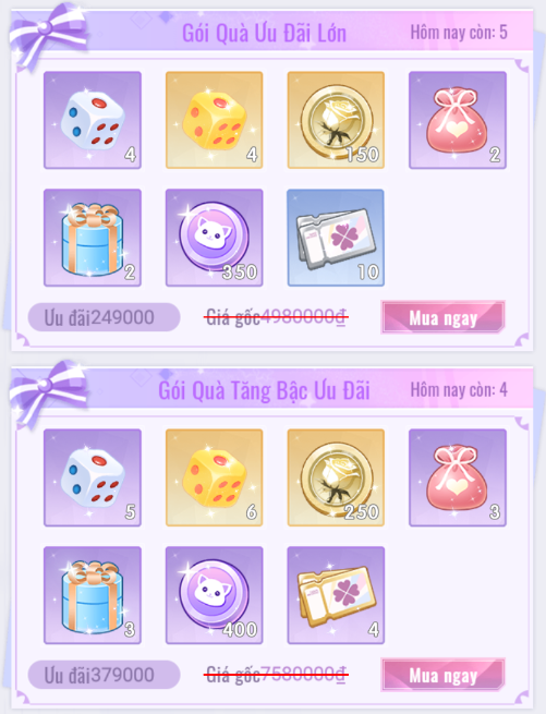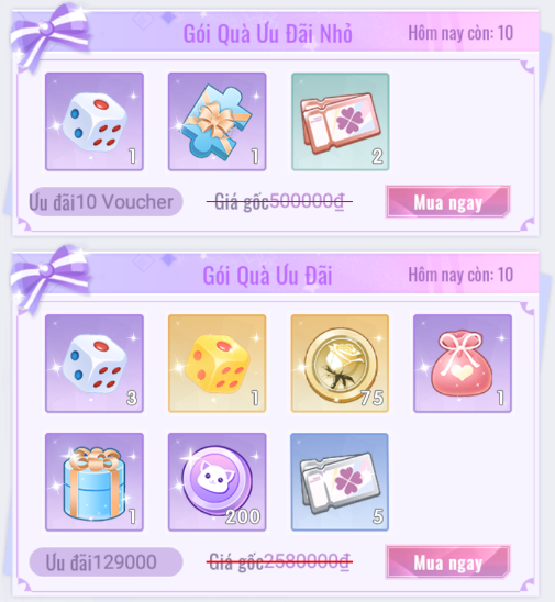 - Gói Ưu Đãi (Bao gồm Gói Quà Miễn Phí).