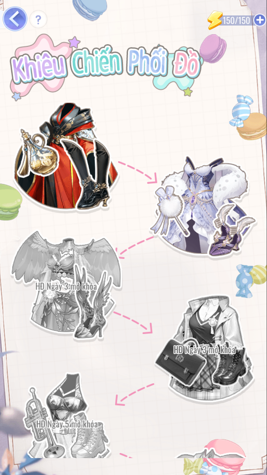 • Khiêu Chiến Phối Đồ có tổng cộng 7 ải, sẽ lần lượt mở khóa vào ngày thứ 1/3/5 của hoạt động.