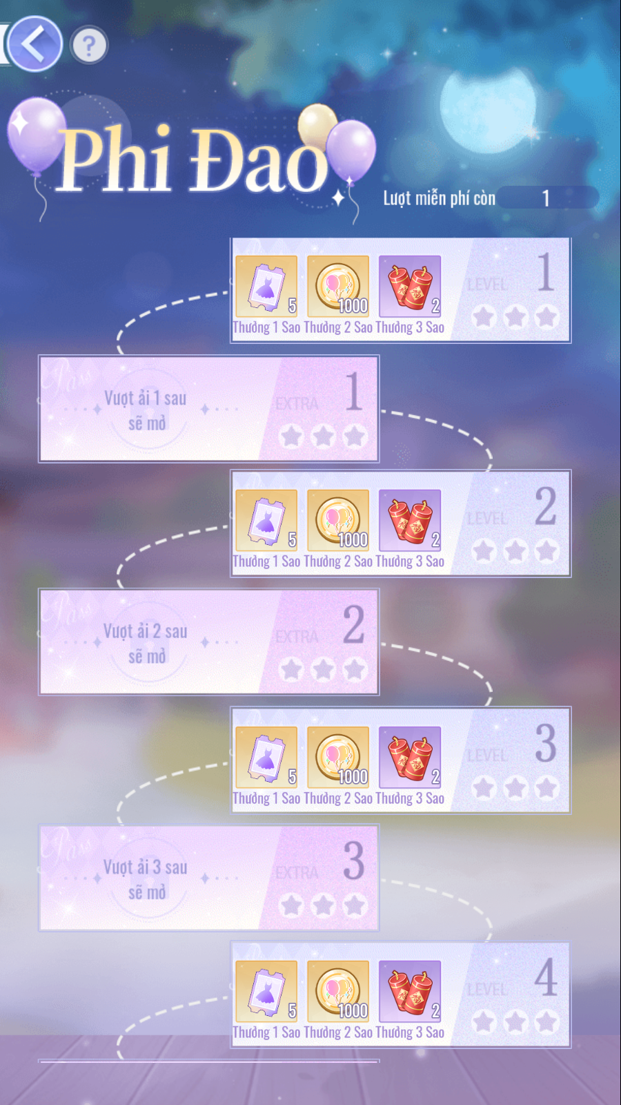 • Sau khi đạt điểm cuối mỗi lượt thì sẽ mở lượt tiếp theo.