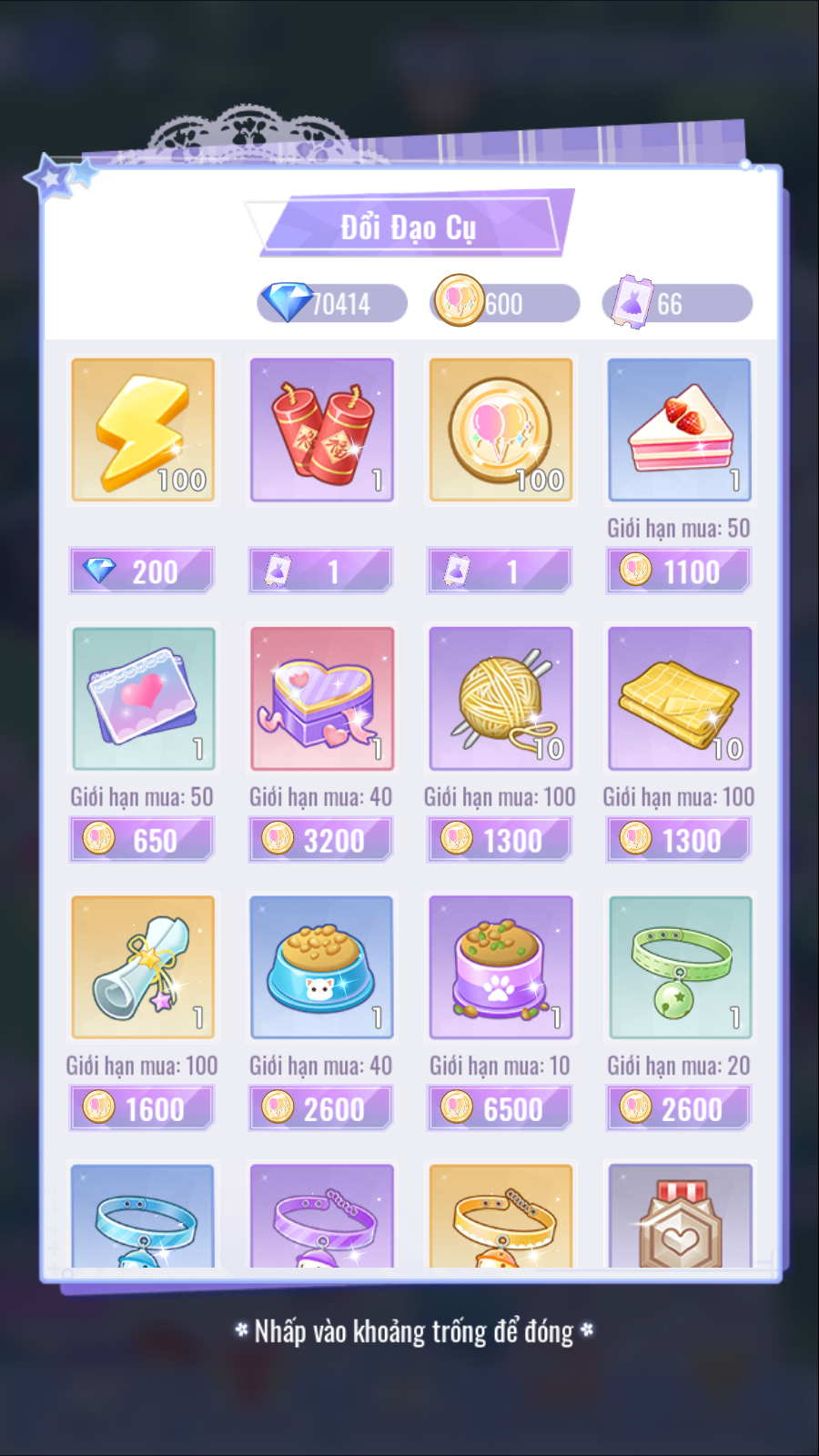• [Huy Hiệu Phù Hoa]: Dùng để đổi trang phục nữ hoặc tài nguyên trong Tiệm Huy Hiệu.