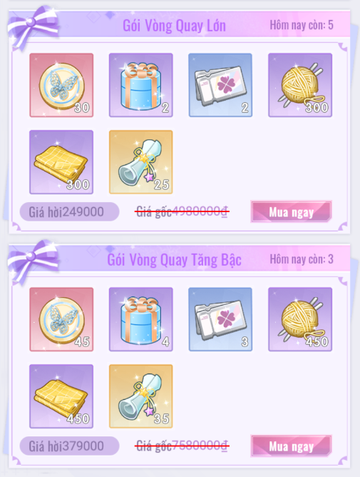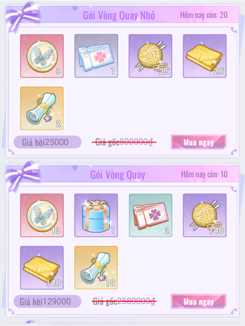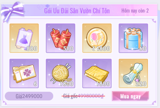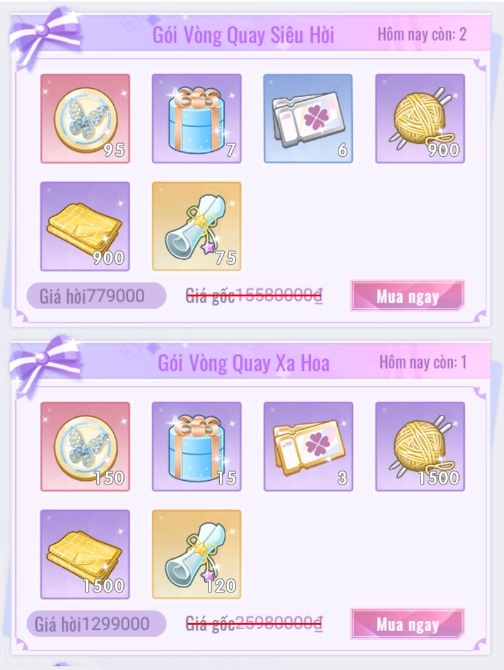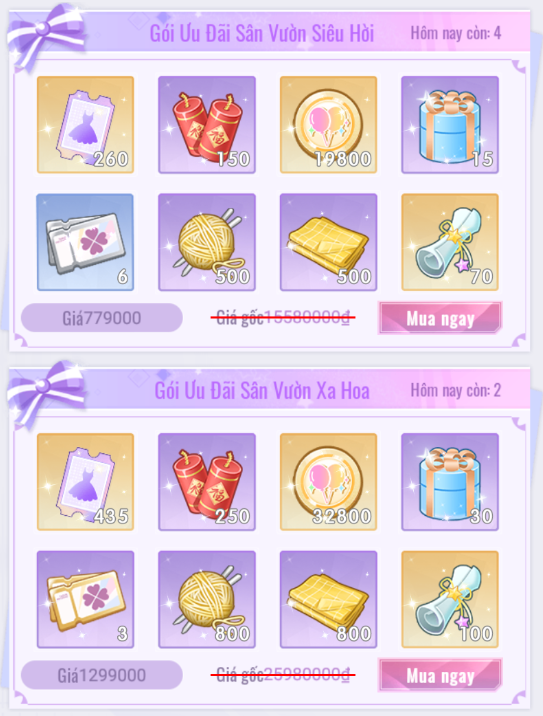 • Thông tin chi tiết các gói bán, các Bảo Bối hãy xem trong game khi hoạt động mở nhé!