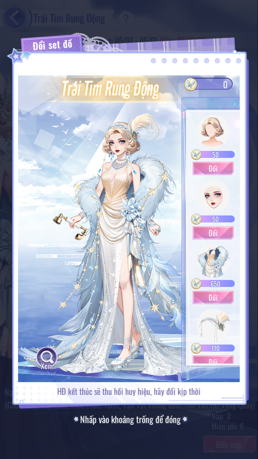 • Để có thể đổi được trang phục nữ 5★ "Trái Tim Rung Động", cần sử dụng vật phẩm [Huy Hiệu Rung Động].