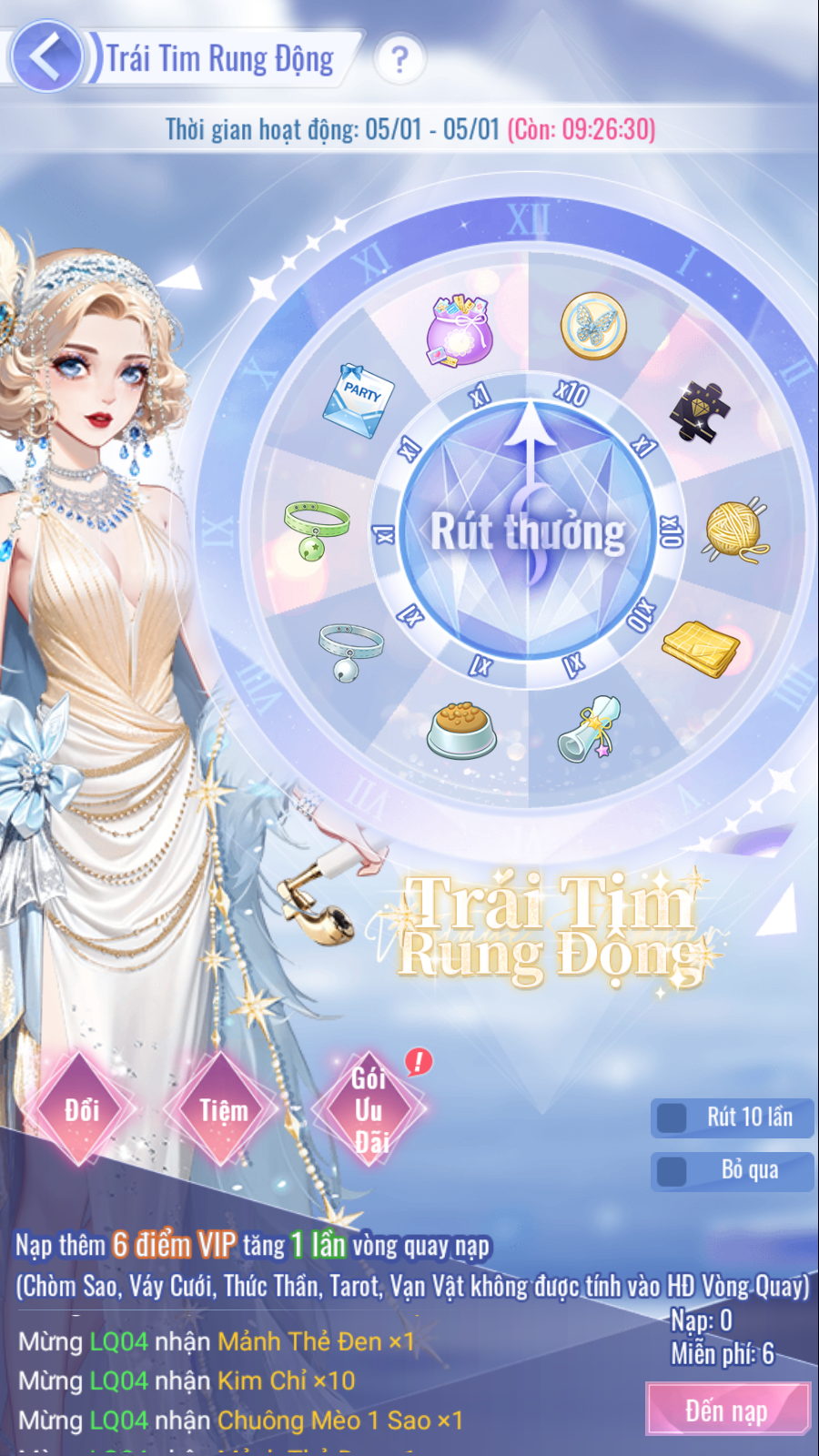 • Mỗi khi nhận được 6 điểm VIP, tặng thêm 1 lần vòng quay.
