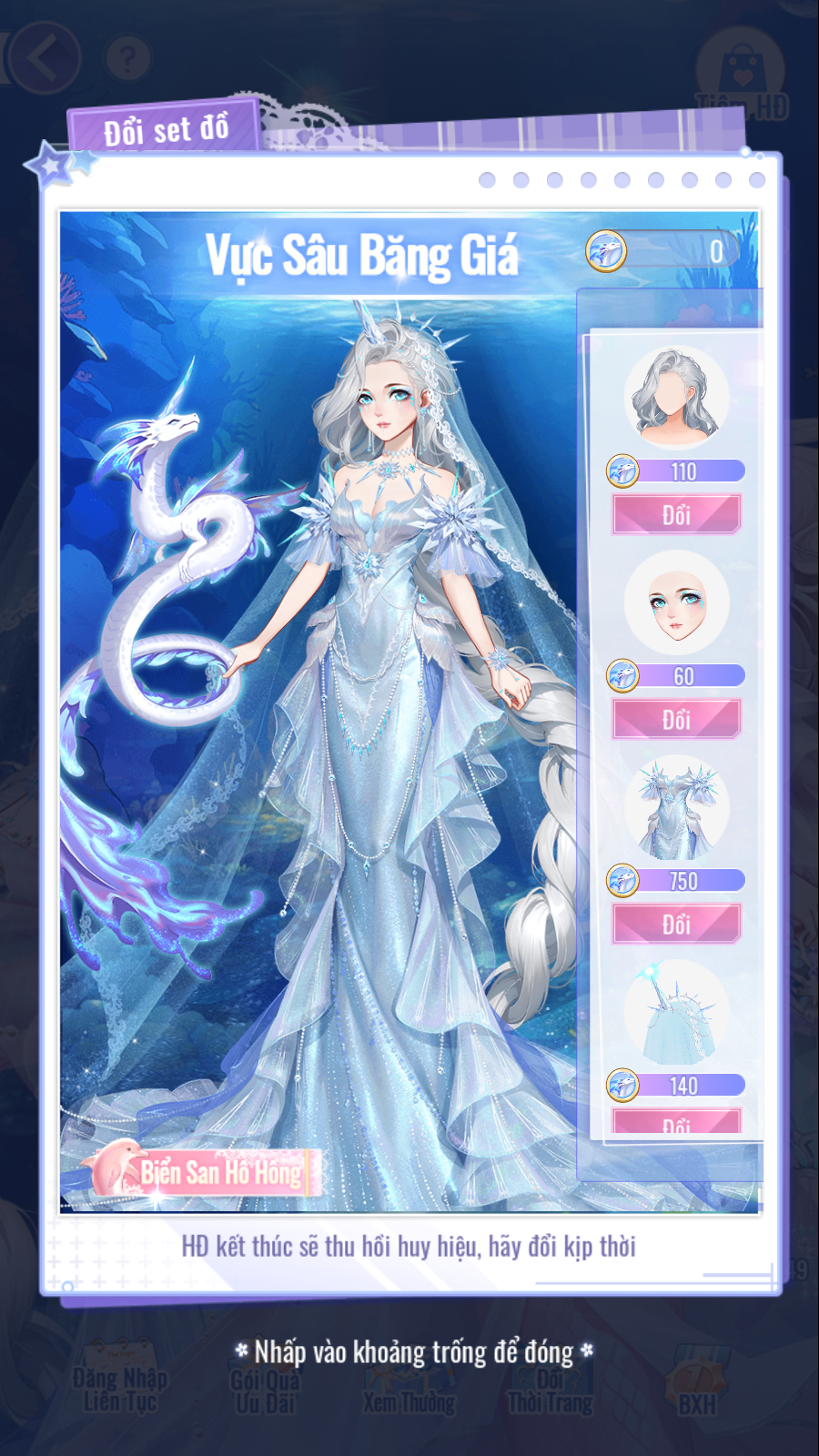 - Trang phục nữ 5★ "Vực Sâu Băng Giá": Tổng tiêu hao 1.500 [Huy Hiệu Vực Sâu].