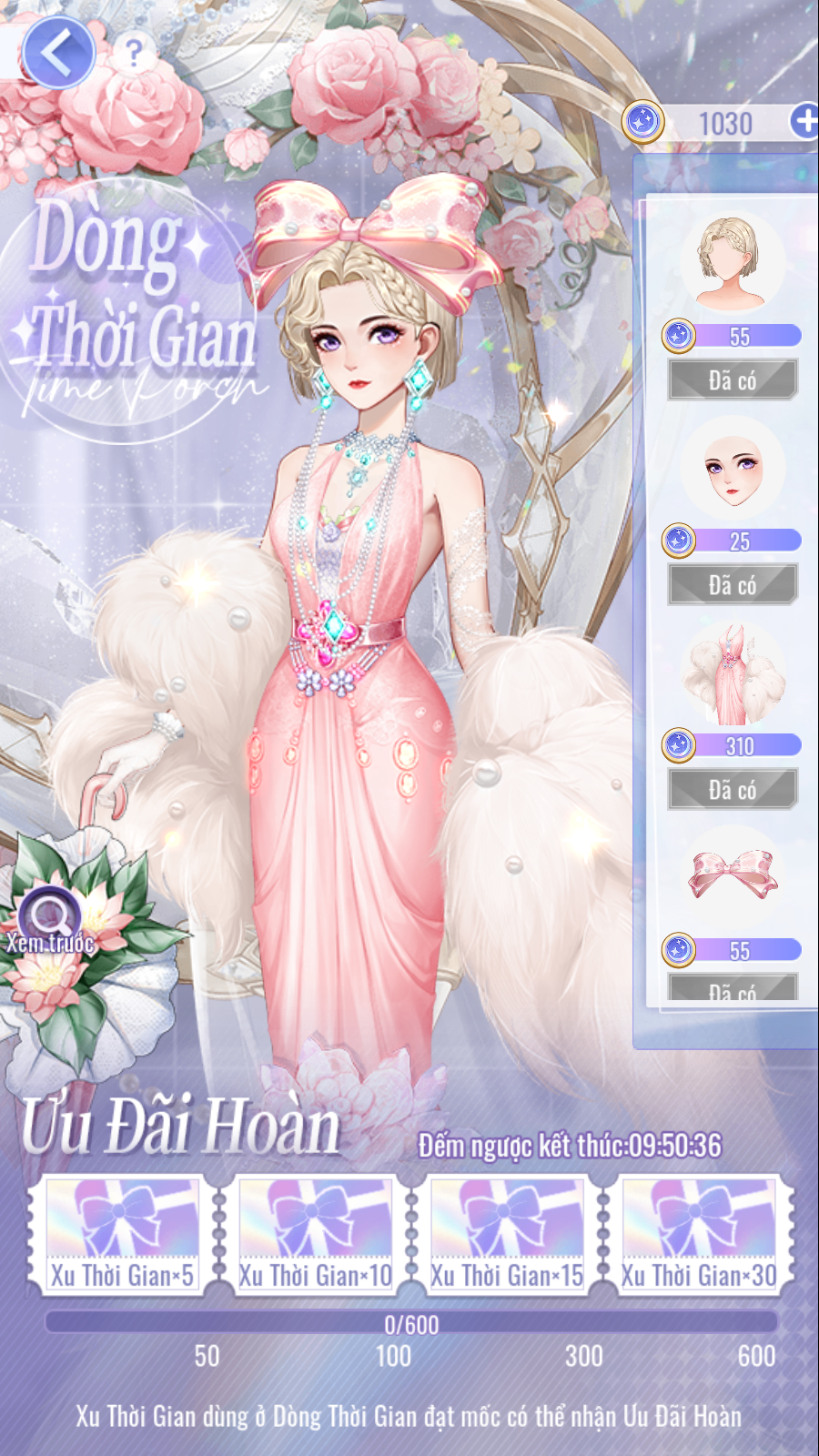 - Trang phục nữ 5★ "Tình Đẹp Xuyến Xao": Tổng tiêu hao 650 [Xu Thời Gian].