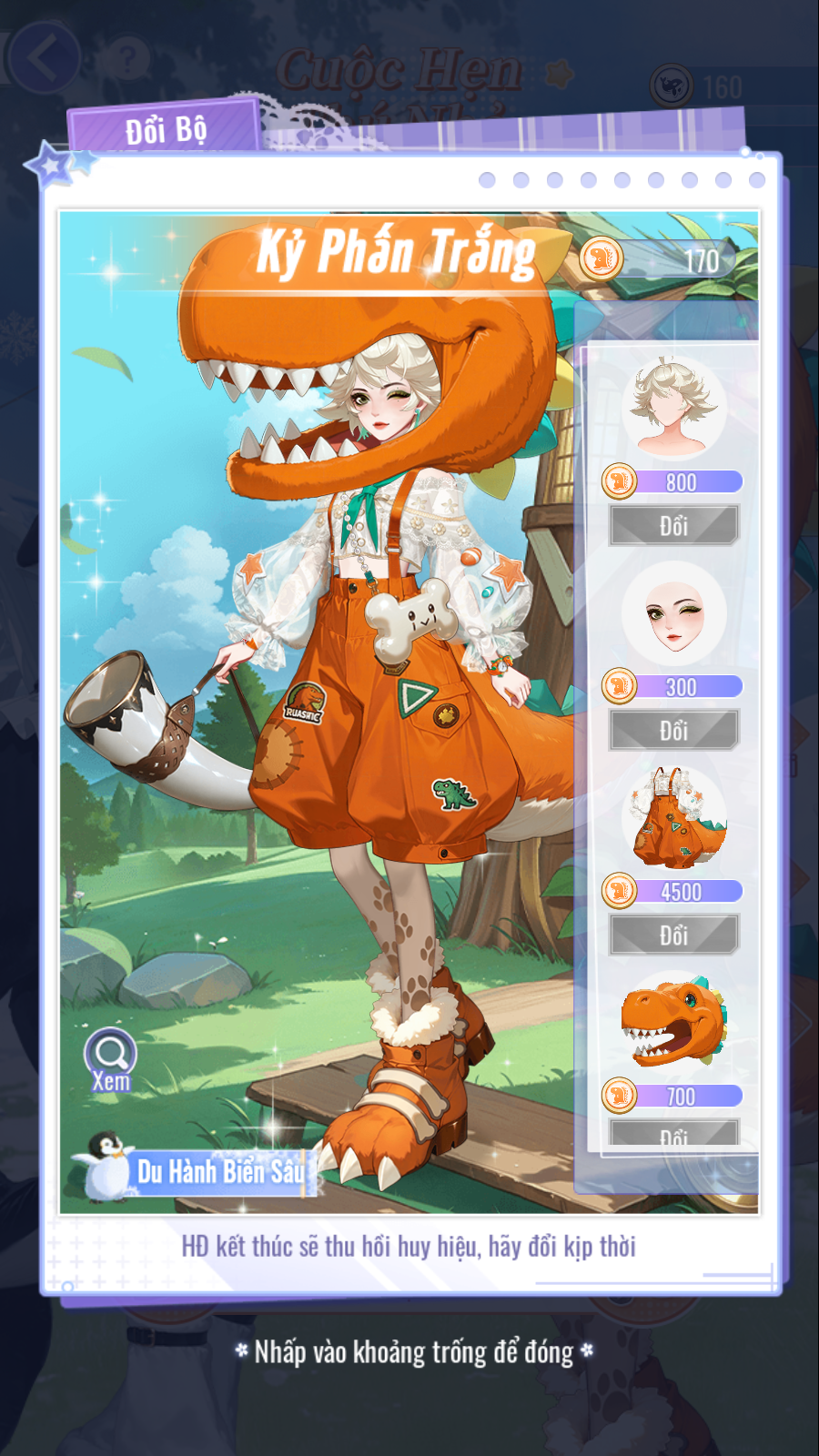• [Huy Hiệu Khủng Long]: Dùng để đổi trang phục "Kỷ Phấn Trắng".