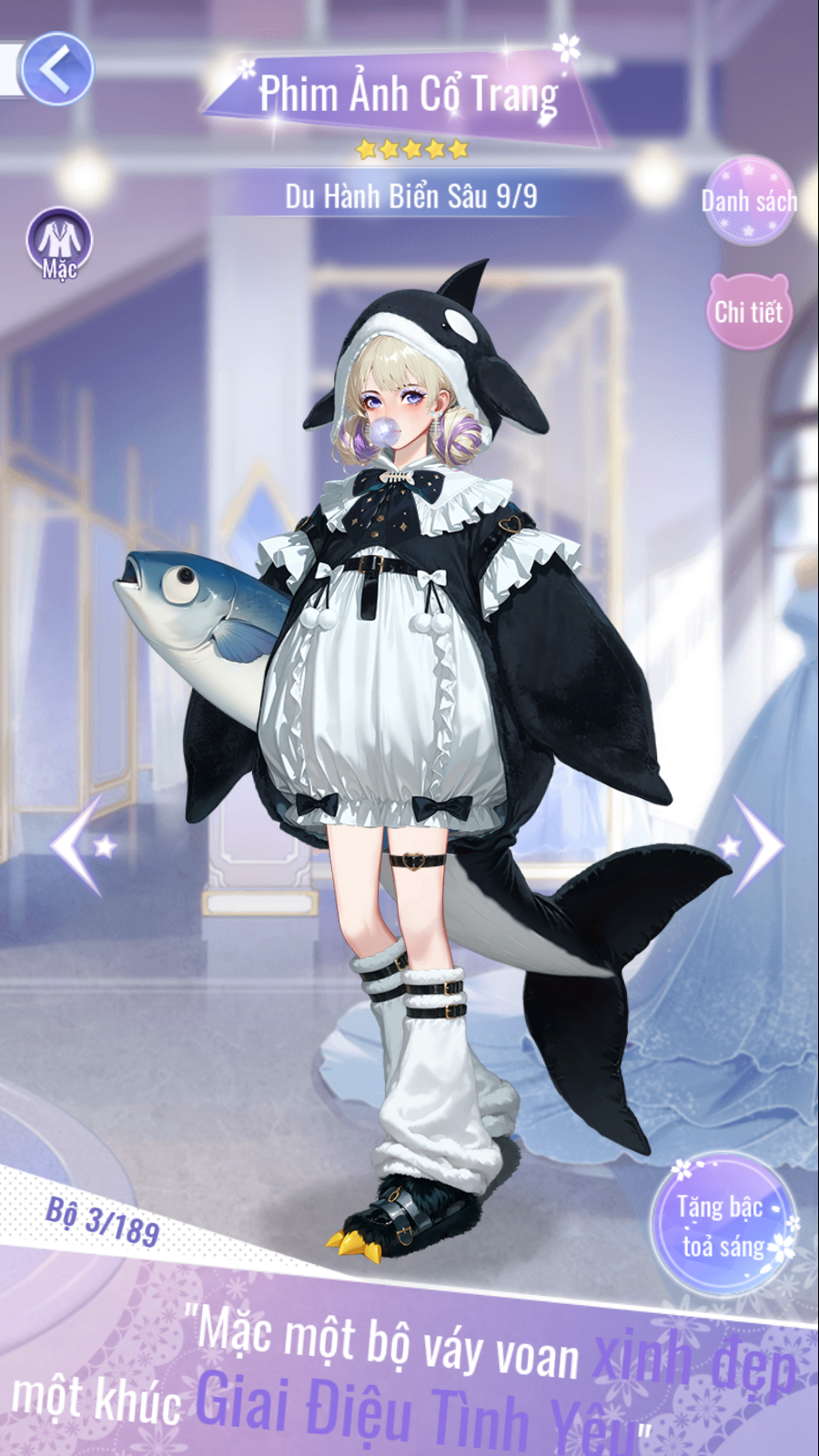 - Trang phục nữ 5★ "Du Hành Biển Sâu": Tổng tiêu hao 8.800 [Huy Hiệu Cá Voi].