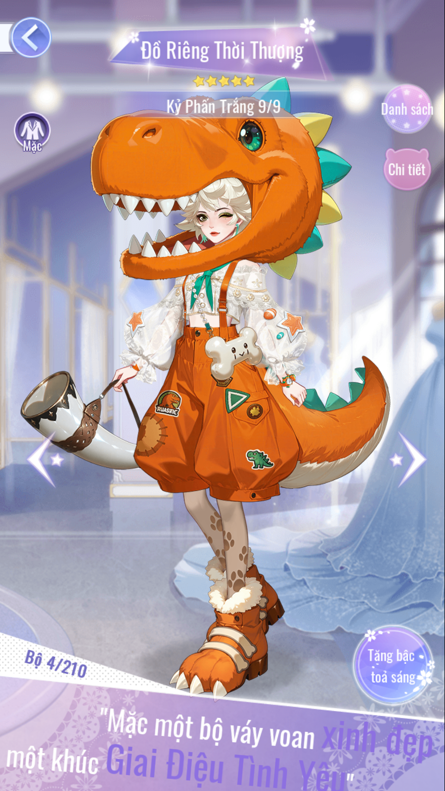 - Trang phục nữ 5★ "Kỷ Phấn Trắng": Tổng tiêu hao 8.800 [Huy Hiệu Khủng Long].