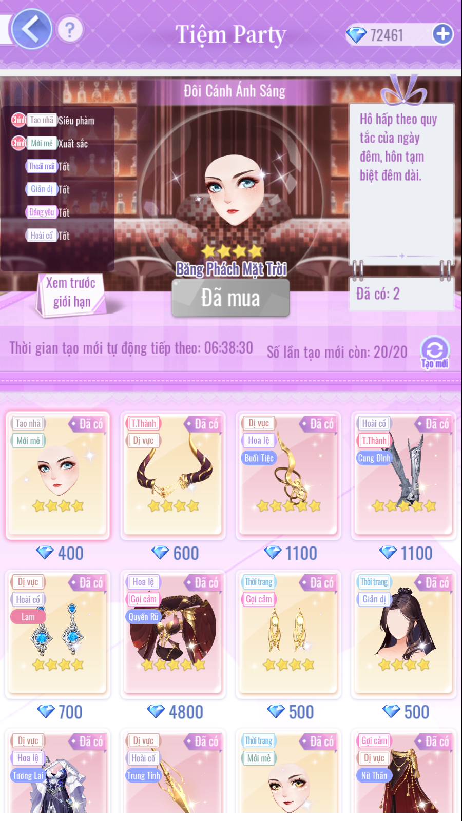 - Trang phục nữ 5★ "Đôi Cánh Ánh Sáng": Tổng tiêu hao 13.000 [Kim Cương].