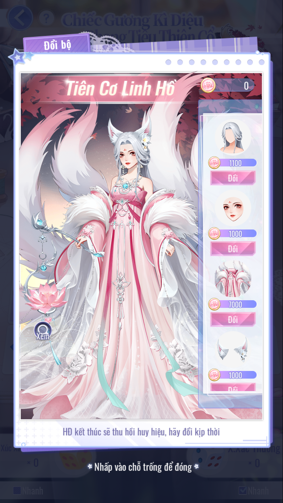 - Trang phục nữ 5★ "Tiên Cơ Linh Hồ": Tổng tiêu hao 14.000 [Huy Hiệu Linh Hồ].