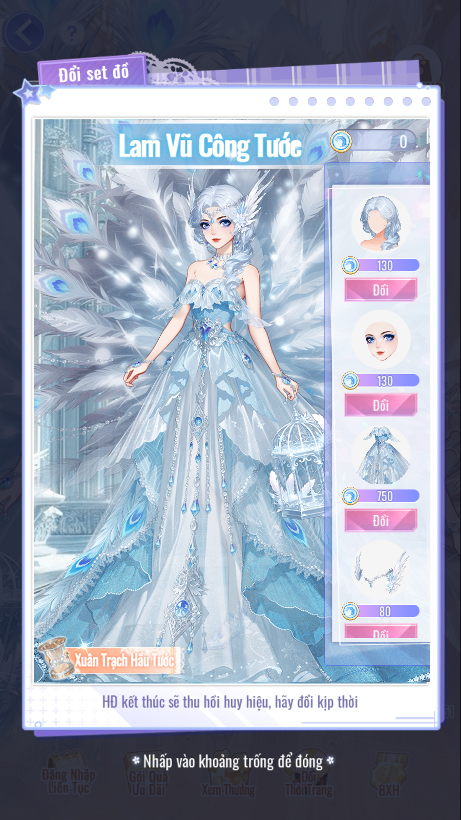 - Trang phục nữ 5★ "Xuân Trạch Hầu Tước": Tổng tiêu hao 1.250 [Huy Hiệu Xuân Trạch].