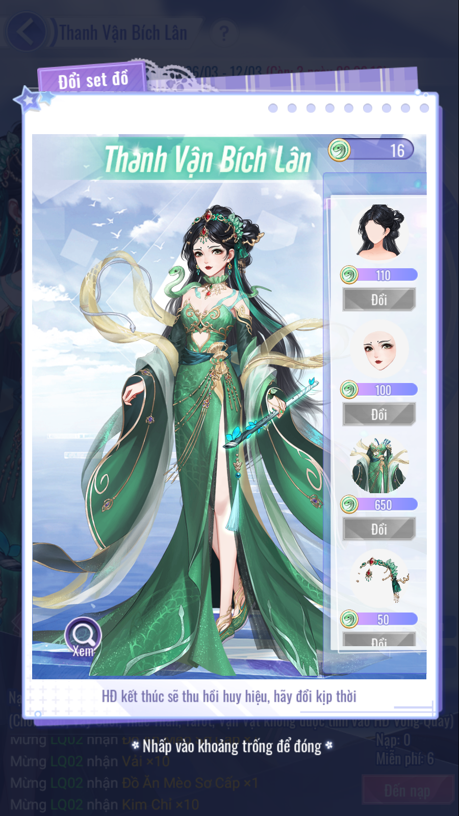 • Tăng bậc trang phục "Thanh Vận Bích Lân":