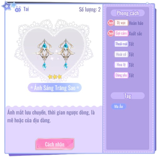 - Phụ kiện khuyên tai 3★ "Ánh Sáng Trăng Sao": Tiêu hao 450 [Kim Cương].