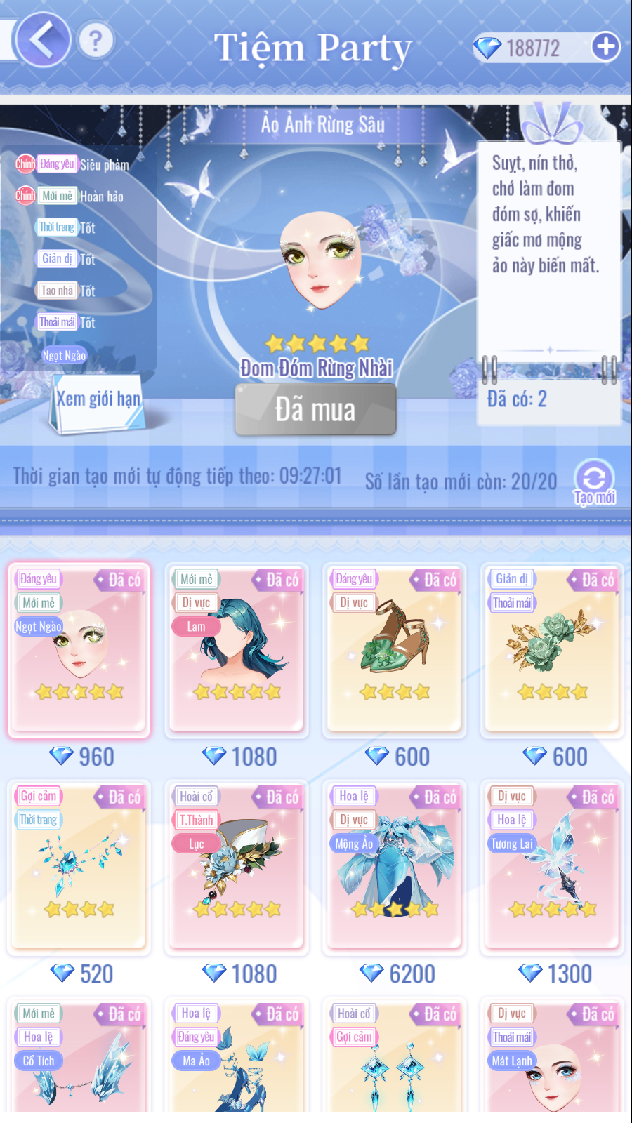 - Trang phục nữ 5★ "Ảo Ảnh Rừng Sâu": Tổng tiêu hao 15.000 [Kim Cương].