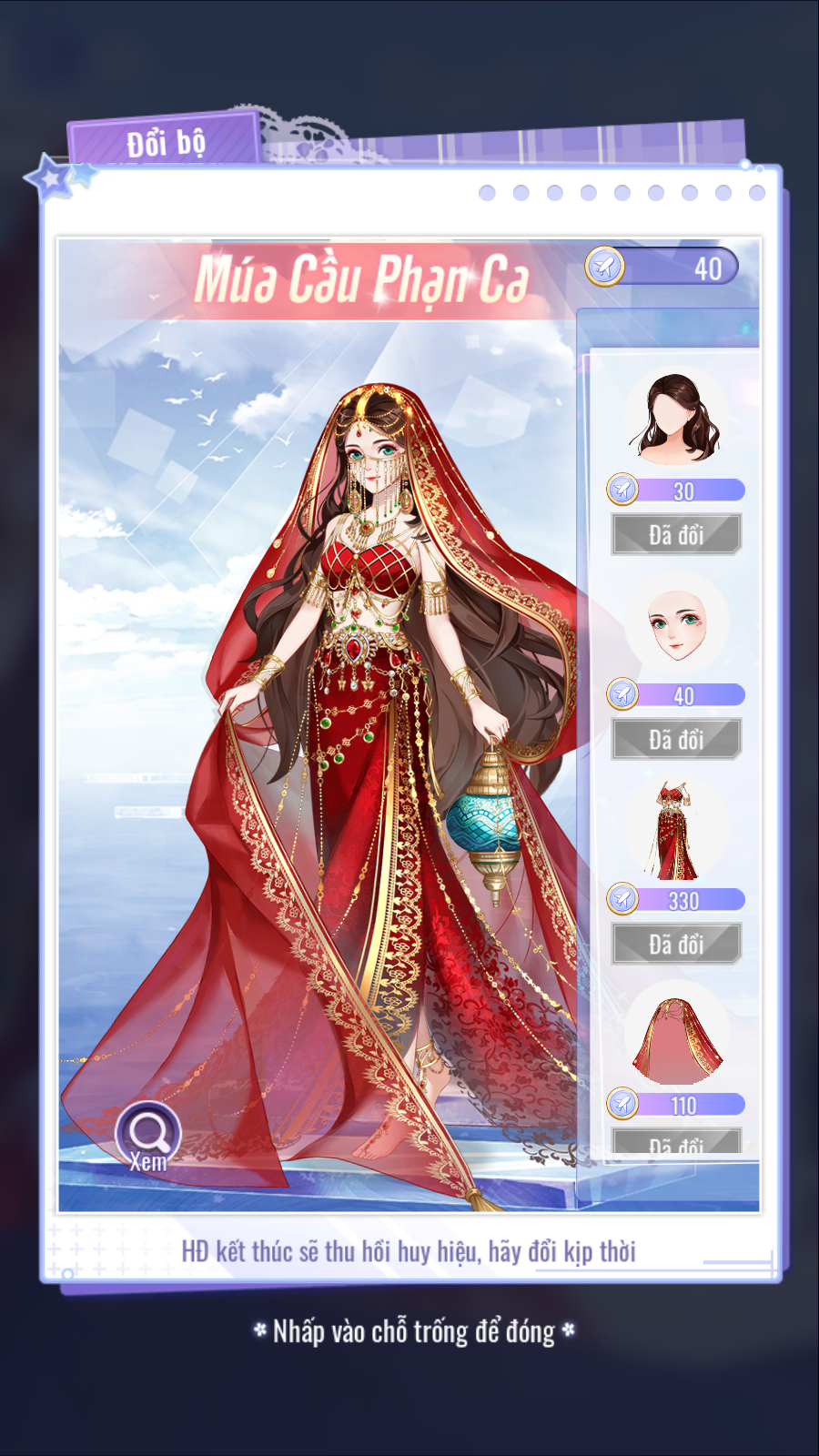 - Trang phục nữ 5★ "Múa Cầu Phạn Ca": Tổng tiêu hao 830 [Huy Hiệu Hoàn Du].