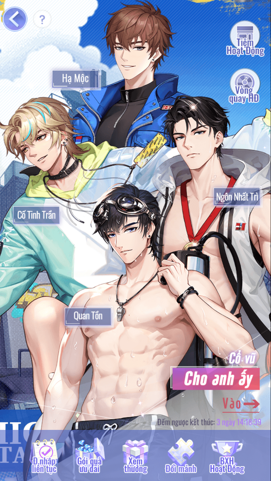 - Mỗi ngày nhớ vào [Gói Quà Miễn Phí] để nhận quà và vật phẩm hỗ trợ sự kiện nhé!