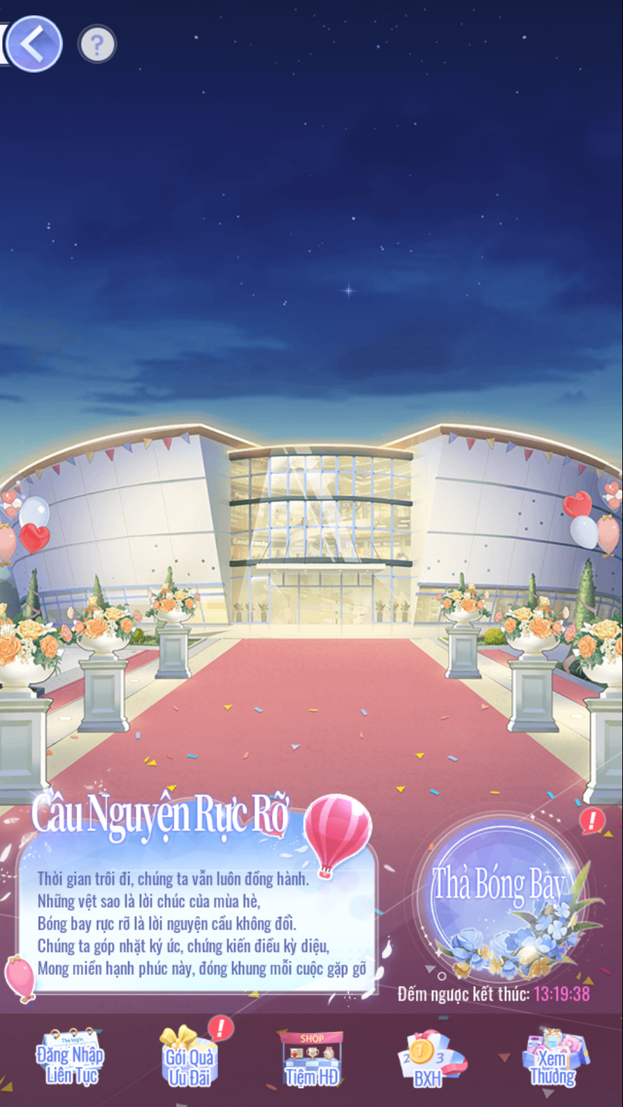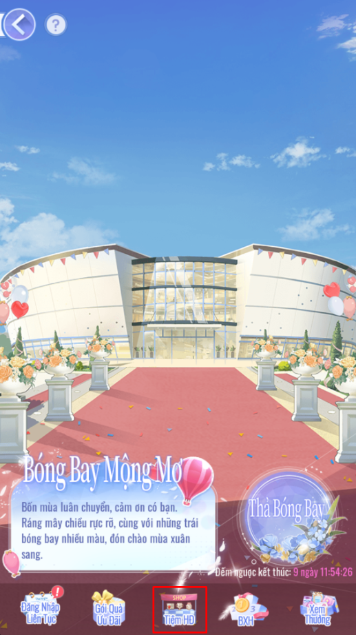 - Tiệm Hoạt Động (Giới Hạn 10 lượt mua. 20 [Kim Cương] = 1 [Khinh Khí Cầu Màu]).