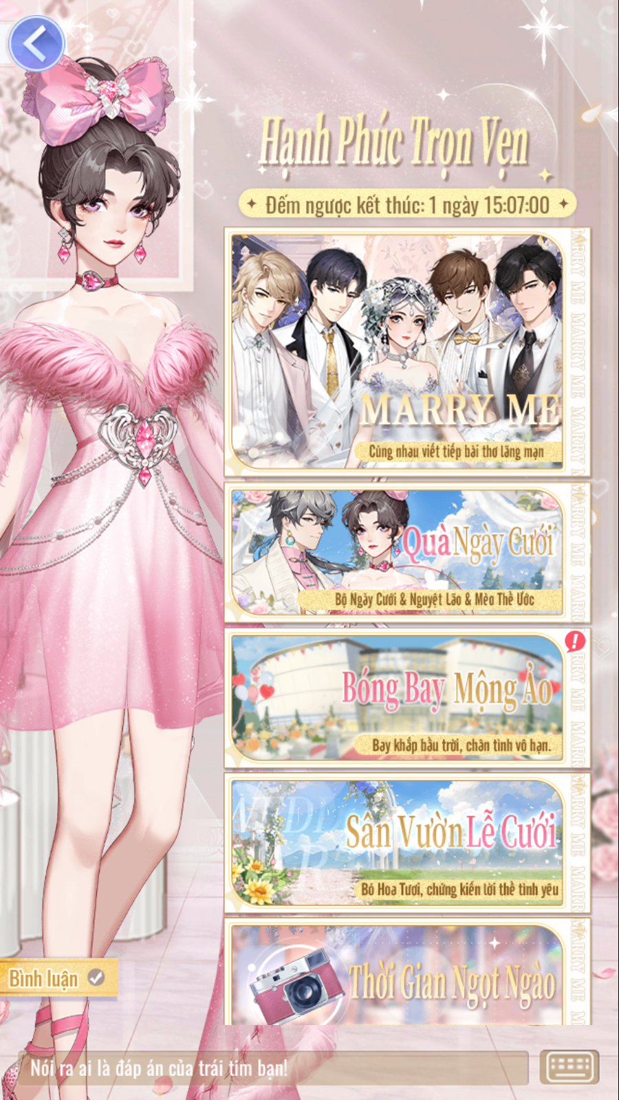 - Các Bảo Bối có thể chọn phần thưởng mà mình thích, làm thưởng lớn cuối cùng của mỗi vòng Hoa Cưới. Sau khi chọn sẽ không thể thay đổi thưởng lớn, nên chọn kỹ rồi hãy xác nhận nhé.