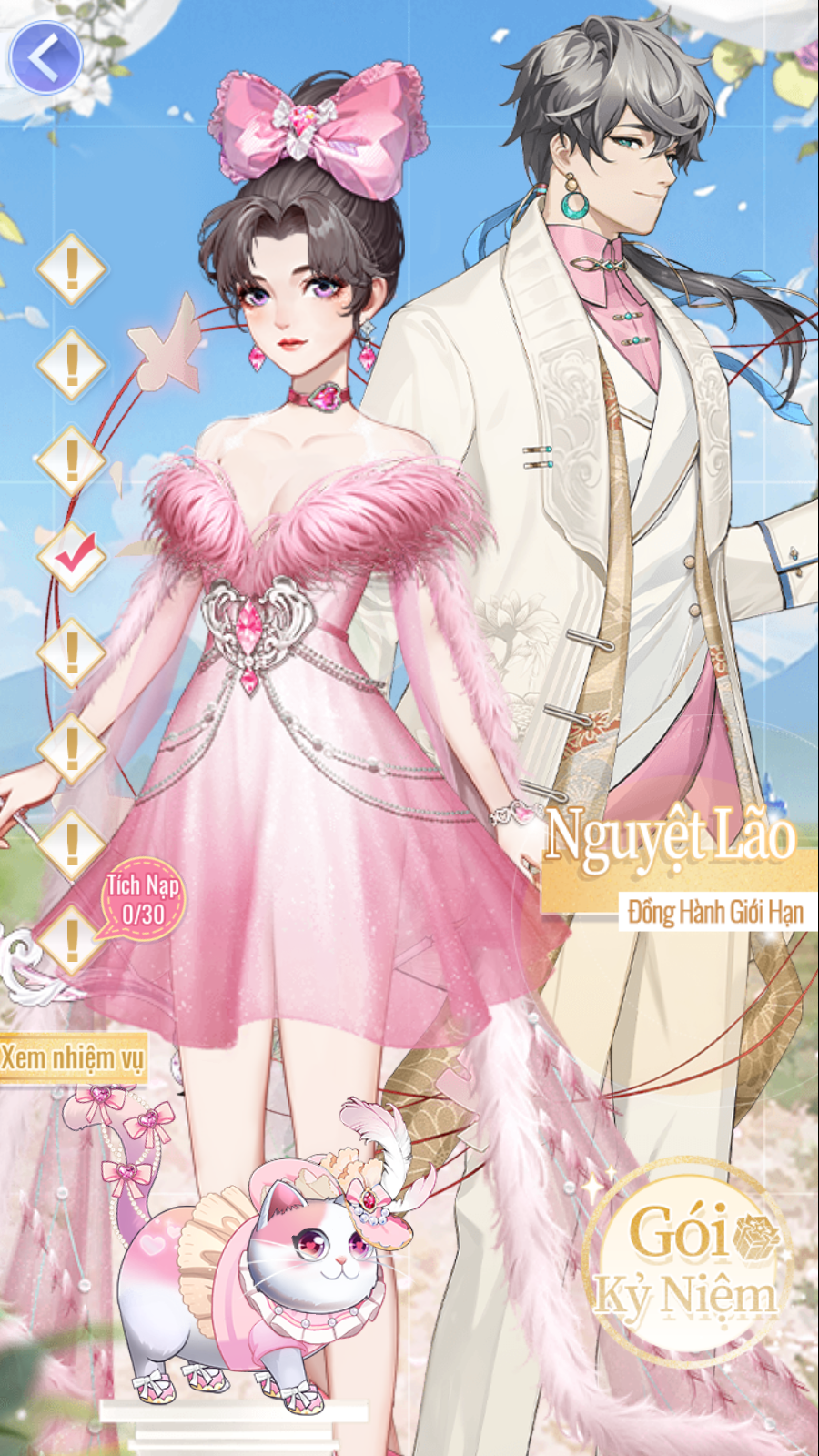 • Trong thời gian diễn ra hoạt động, chỉ cần nạp tích lũy 30 Điểm VIP (129.000 VND) và hoàn thành 7 nhiệm vụ còn lại, các Bảo Bối có thể nhận set [Quà Ngày Cưới] bao gồm: