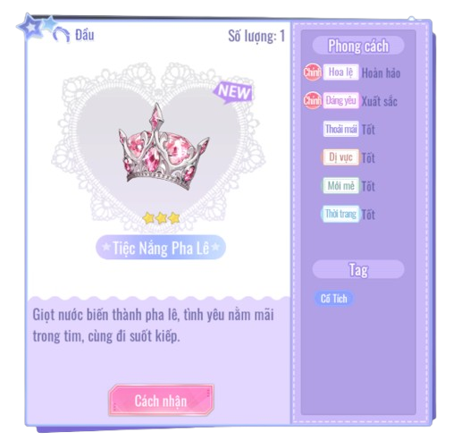 - Phụ kiện đầu "Tiệc Nắng Pha Lê": Tiêu hao 450 [Kim Cương].