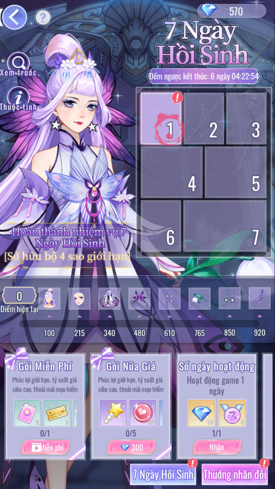 - Hoàn thành nhiệm vụ và tích lũy điểm nhiệm vụ để đổi set giới hạn 4★ [Ảo Mộng Tử Điệp].