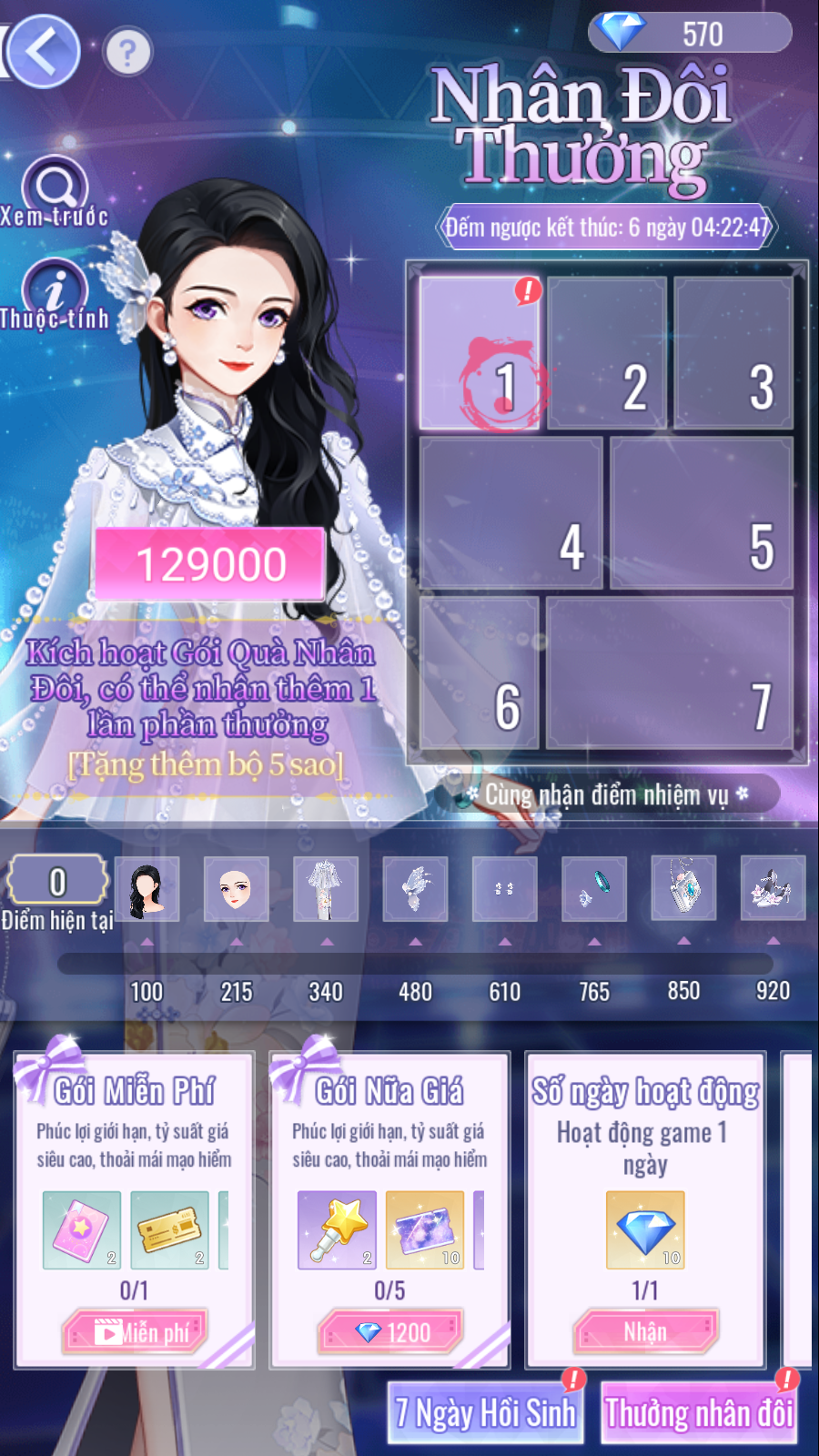 - Gói Quà Nhân Đôi: dùng để mở quyền nhận thưởng thêm và thu thập set 5★.