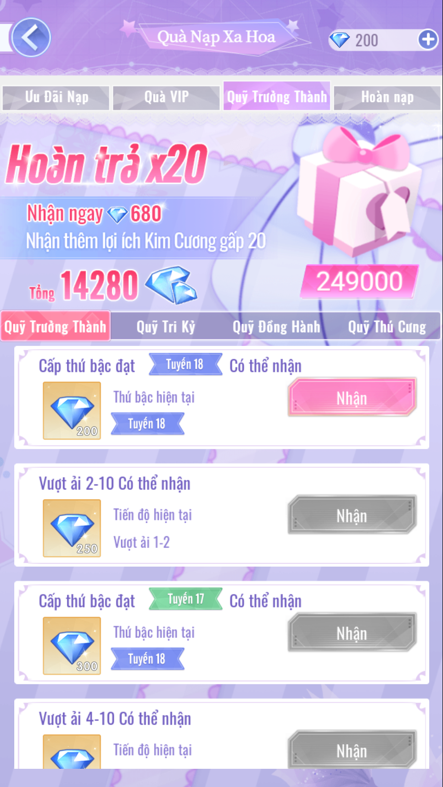 - Gói 1998 Kim Cương: Sau khi mua gói, Kim Cương sẽ được hoàn trả toàn bộ vào thư trong vòng 7 ngày sau