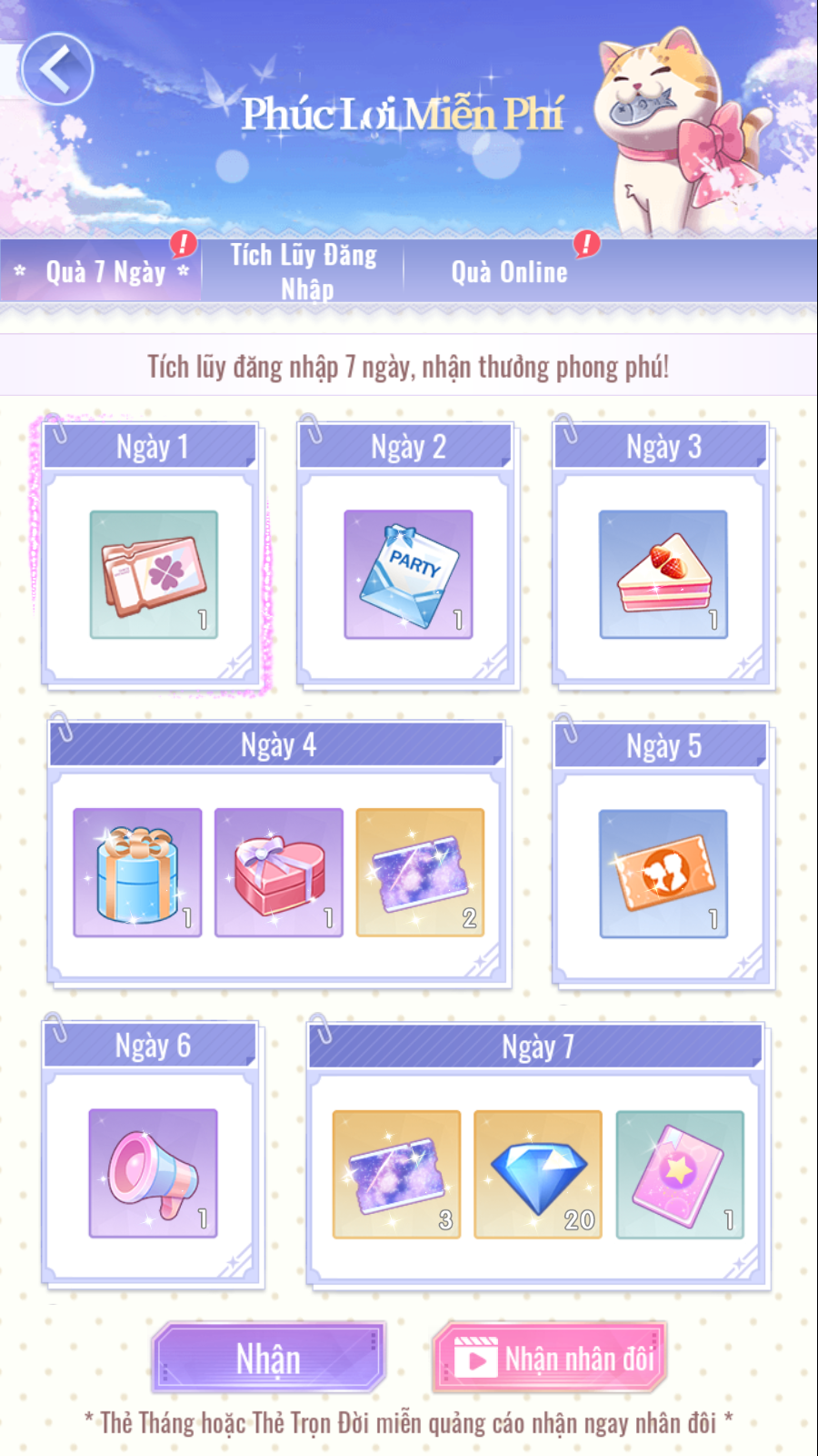 - Bảo Bối tiến hành tích lũy đăng nhập theo các mốc để nhận phần thưởng của sự kiện.