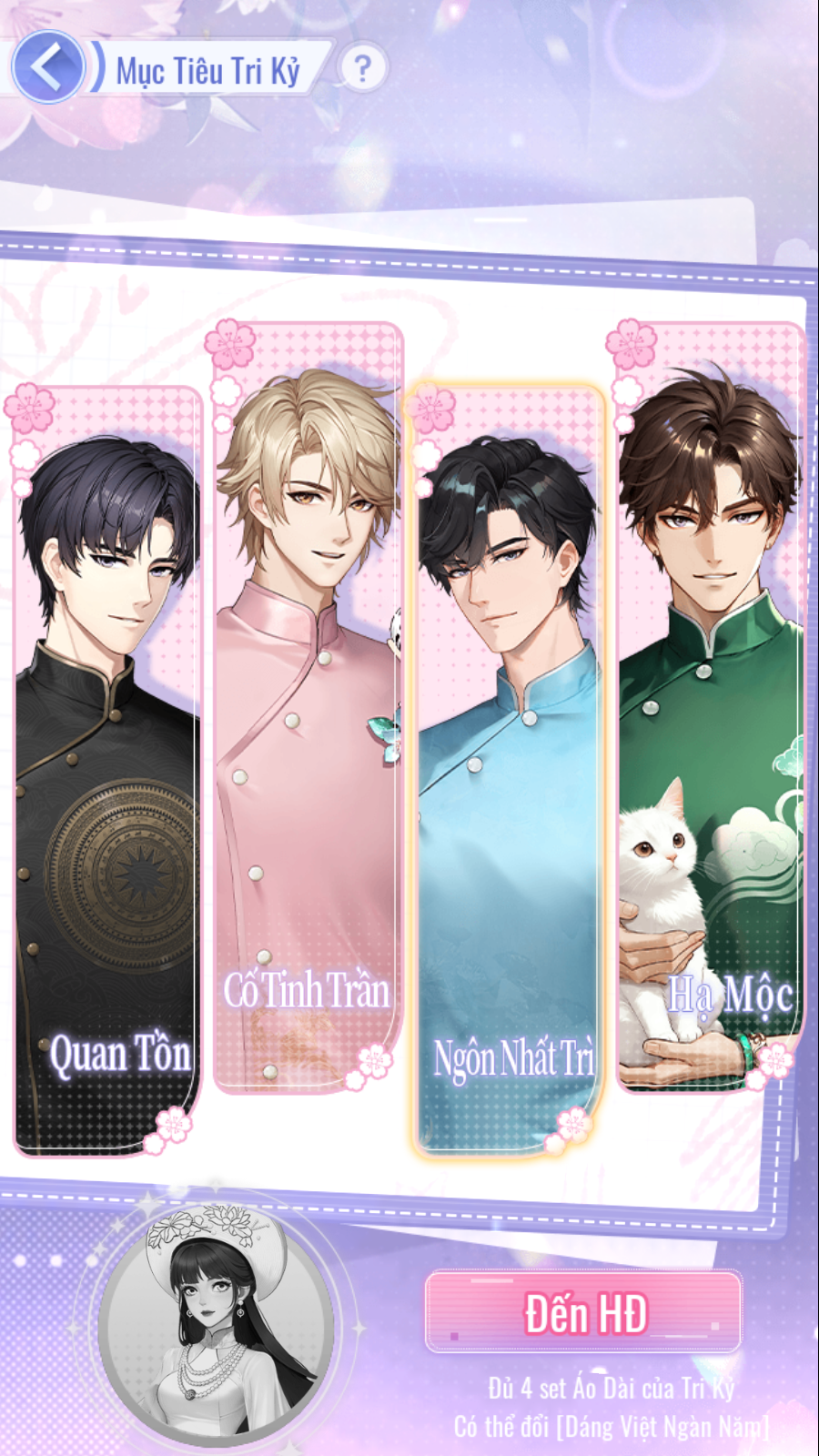 - Sau khi hoàn thành hết nhiệm vụ của Mục Tiêu đã chọn, tiến hành đổi Trang Phục Áo Dài và chọn Mục Tiêu mới tiến độ sẽ được làm mới để các Bảo Bối có thể tiếp tục tích lũy Mảnh Đổi Áo Dài