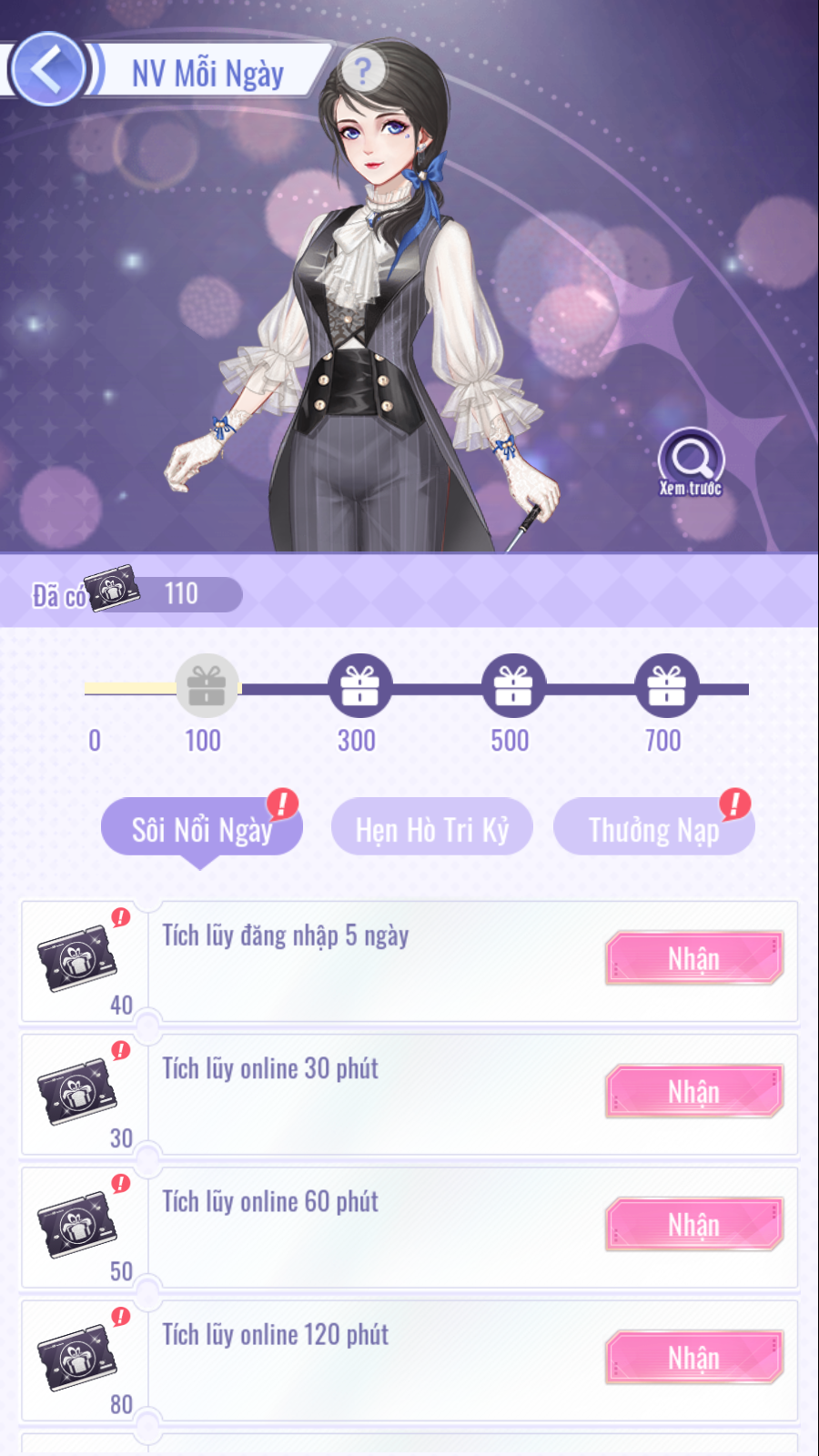 • Tiến hành hoàn thành nhiệm vụ theo các mốc để tích lũy Vé Đặc Quyền, sau đó dùng Vé Đặc Quyền để đổi trang phục 4★.