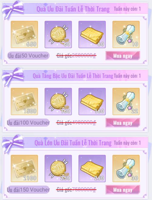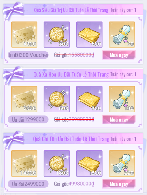 - Gói Quà Thời Trang sẽ làm mới sau 2 Chu Kỳ - 1 Chủ Đề nhé!