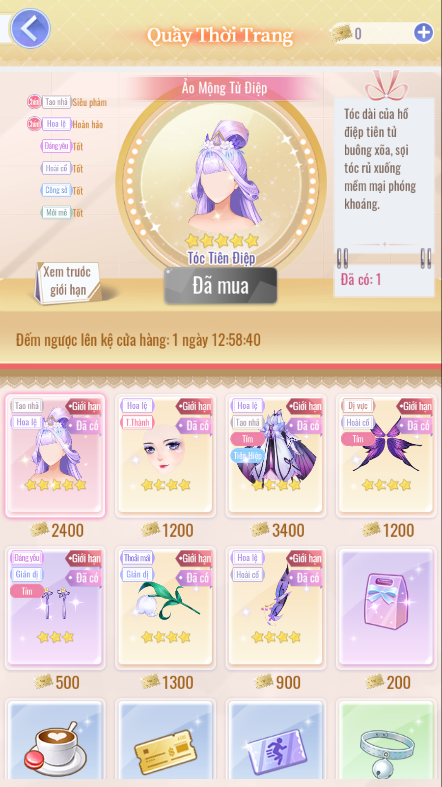 - Mỗi một trang phục được lên kệ trong Quầy Thời Trang ở 4 chu kỳ sẽ được tính là TUẦN 1.