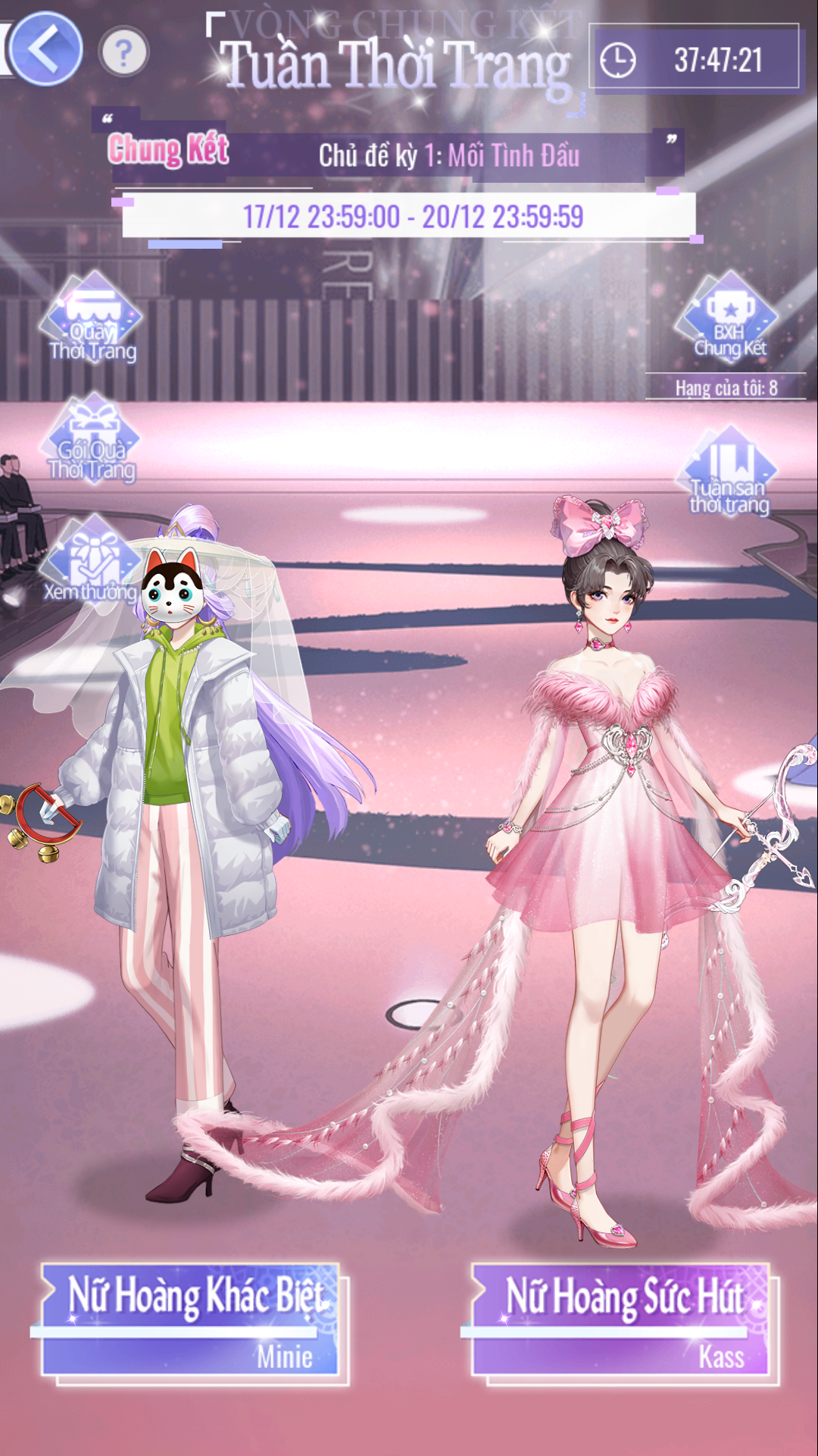 - Giai đoạn thay đồ chung kết: Thứ Hai 12:00 - Thứ Hai 23:59, thời gian nửa ngày.